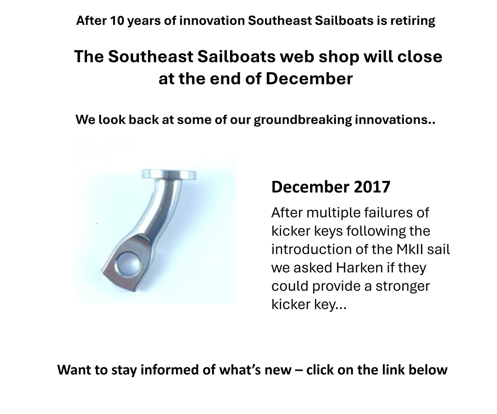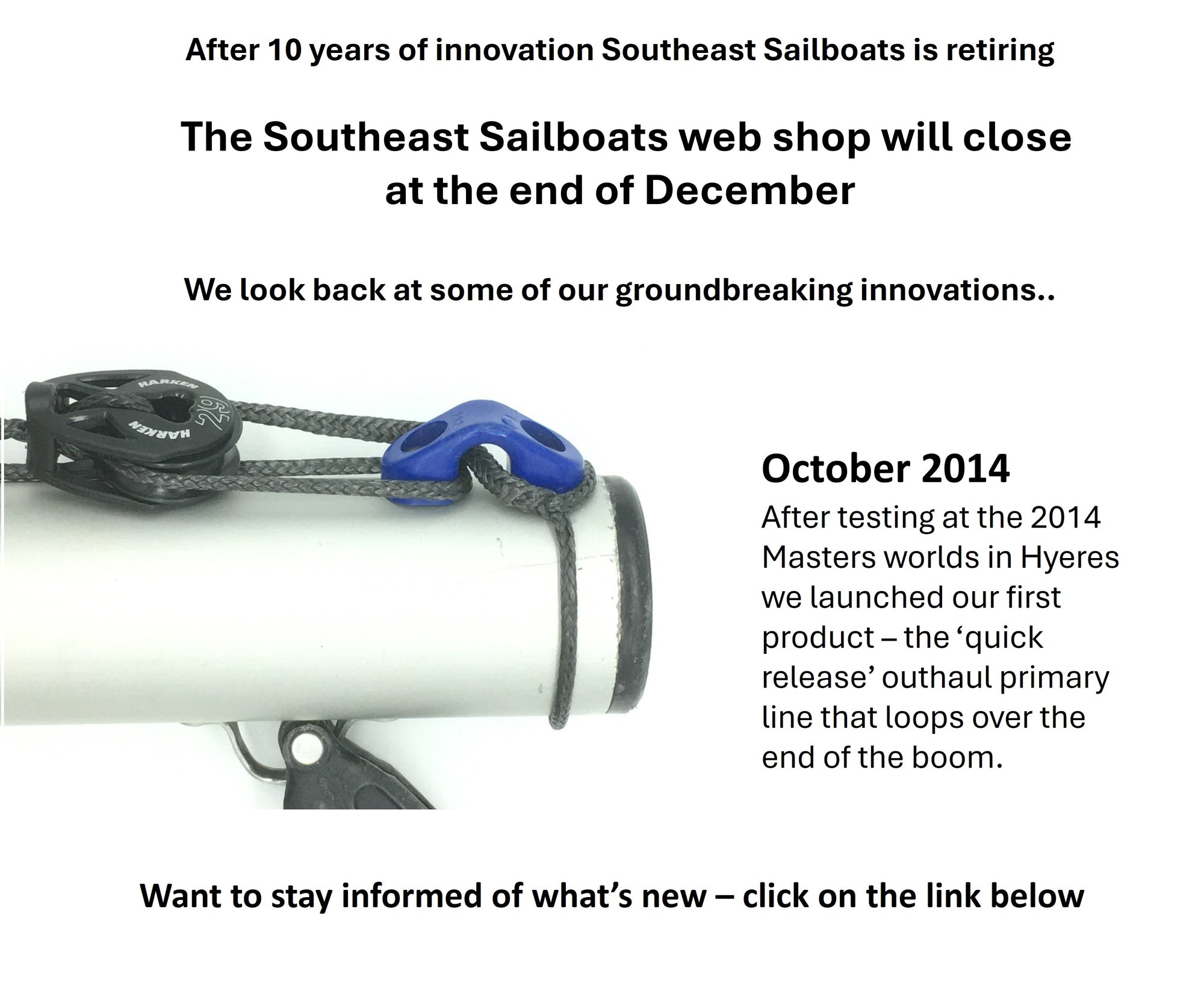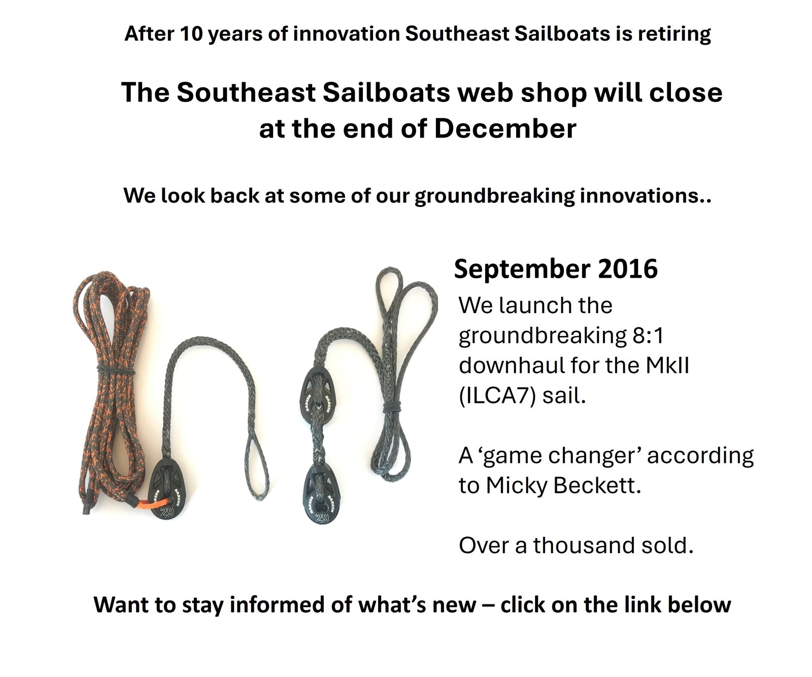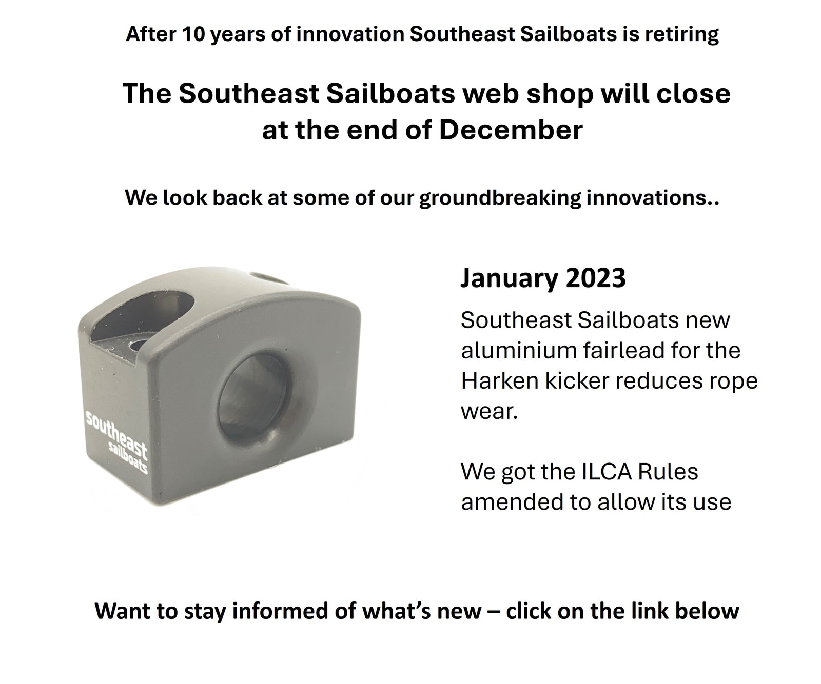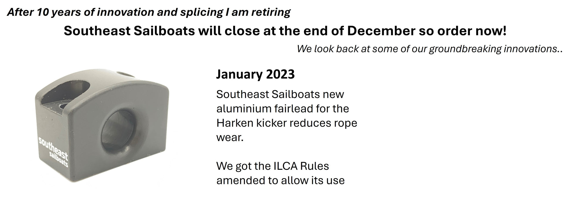 Apart from making great controls (kickers, outhauls etc) especially for the Laser, Southeast Sailboats also give great advice. And as Max Hunt attends and competes in many Laser events, if you live in the UK, you might be able to arrange to meet Max at an event, and get further rigging tips. Great kit and great service!