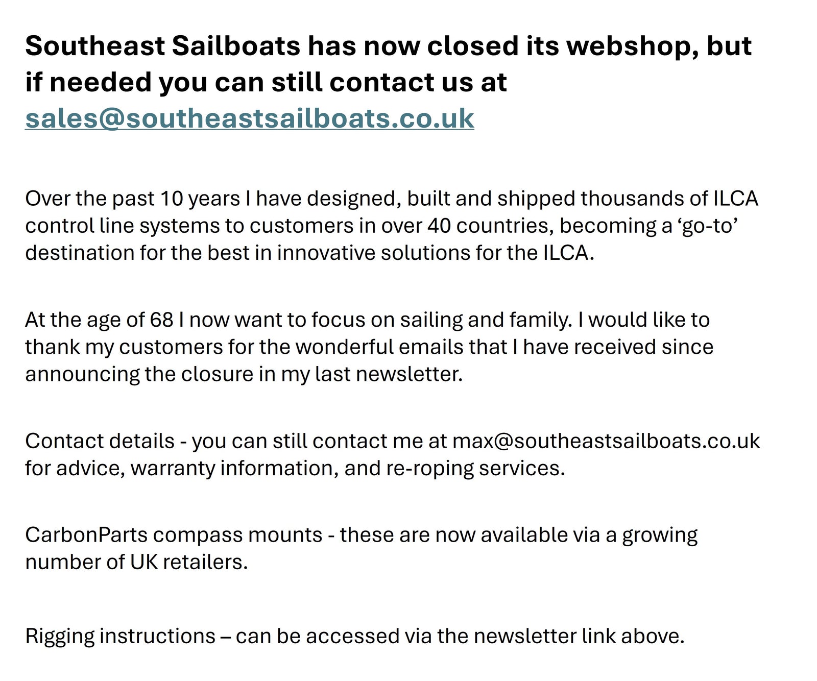 Southeast Sailboats may have closed its webshop but we are continuing to support our sponsored sailors up to the 2028 Olympics