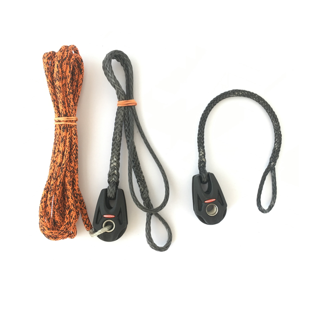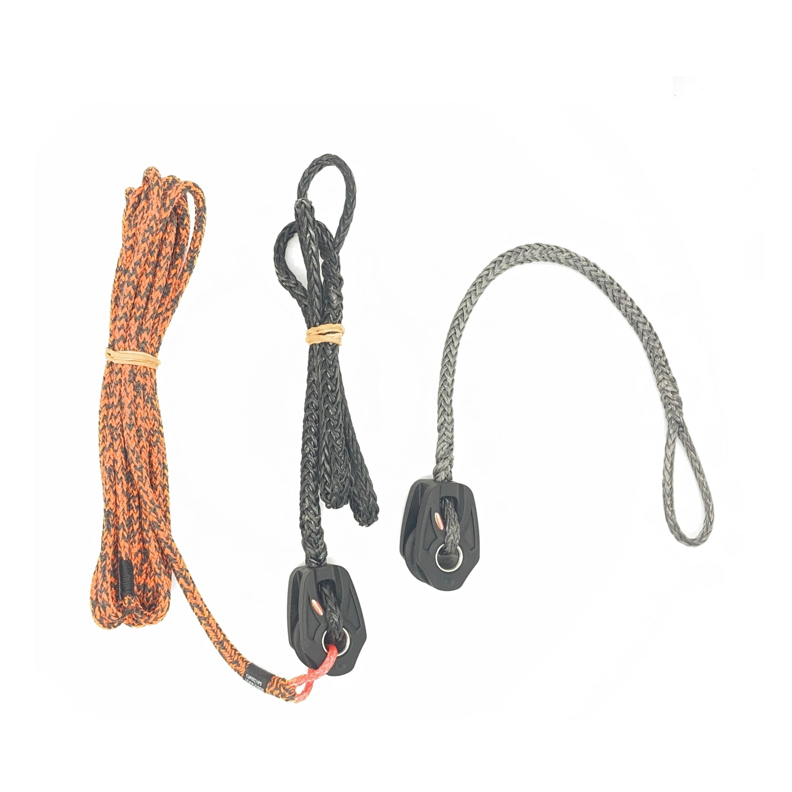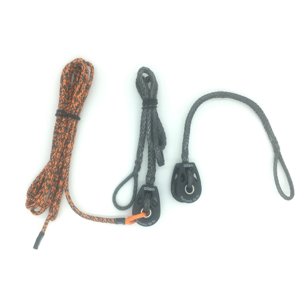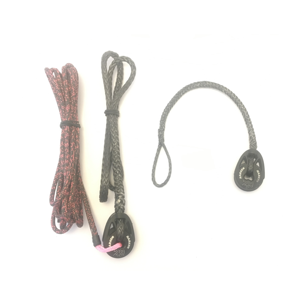 System options allow the primary line to terminated at the top of the kicker assembly. This can be useful if you are using a braided chain handle and want to avoid having to tie/untie your handle when rigging. It is also an easy way of re-configuring your rig one the water if you want to re-rig your system on one side of the boom if the wind conditions change and you want to be able to pull on more downhaul.