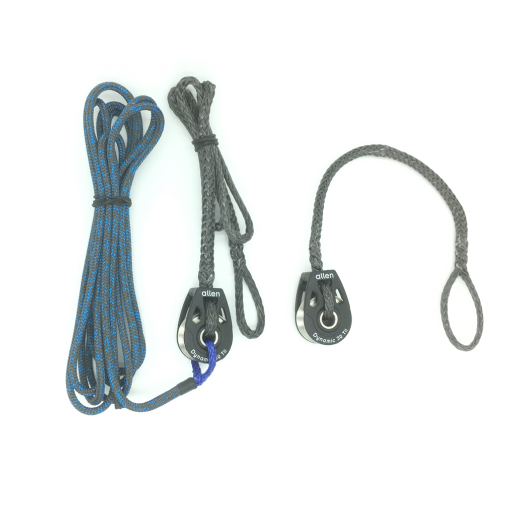 A 6:1 downhaul/Cunningham system gives sufficient purchase for the 4.7/Radial and Standard Mk1 rigs. We offer systems using Allen, Ronstan and Harken blocks. Secondary lines include Robline Dinghy Control and Polytech, and the premium Marlow GP78 which is a harder wearing line. More information on the secondary control lines that we use for our systems can be found here.
