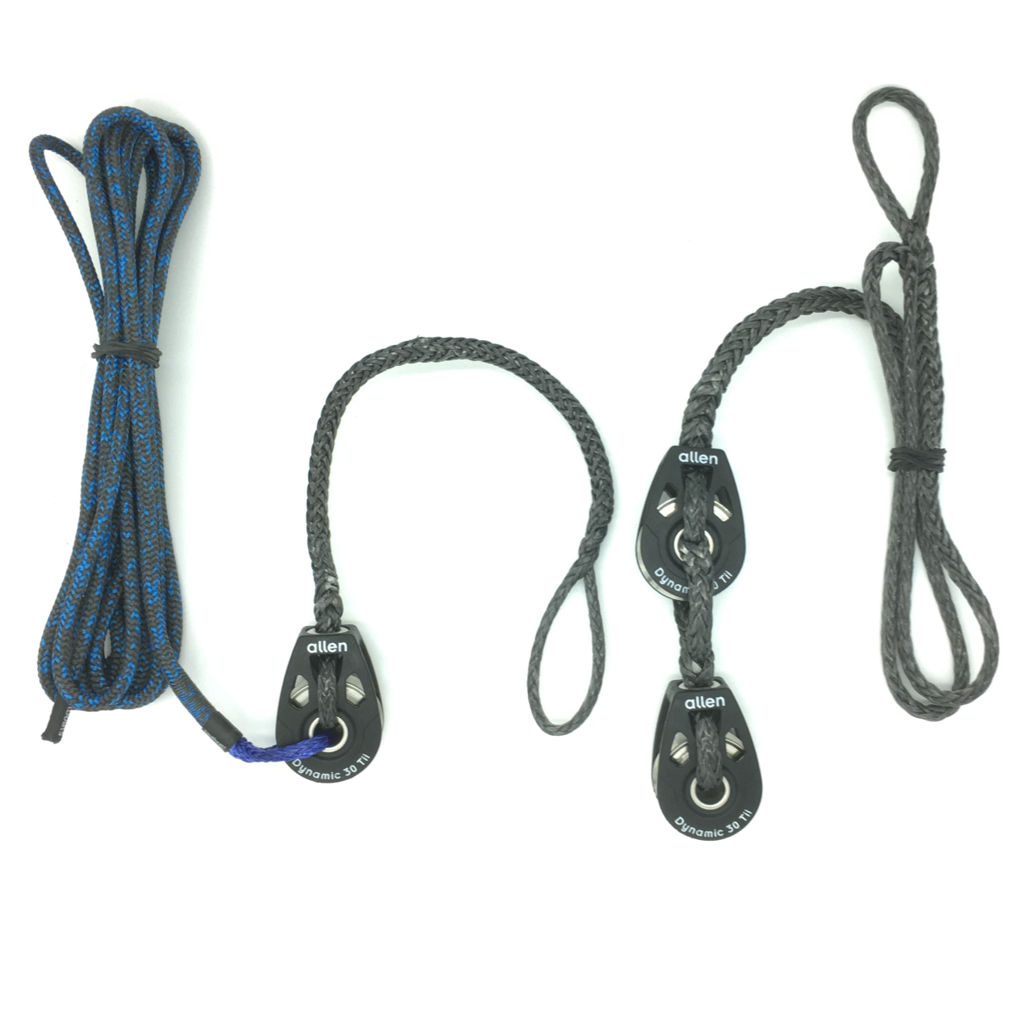 An 8:1 downhaul/Cunningham system is perfect for the ILCA7/Standard MkII rig, and can also be used by sailors using the 4.7/Radial and Standard Mk1 rigs. We offer systems using Allen, Ronstan and Harken blocks. Secondary lines include Robline Dinghy Control and Polytech, and the premium Marlow GP78 which is a harder wearing line. More information on the secondary control lines that we use for our systems can be found here.